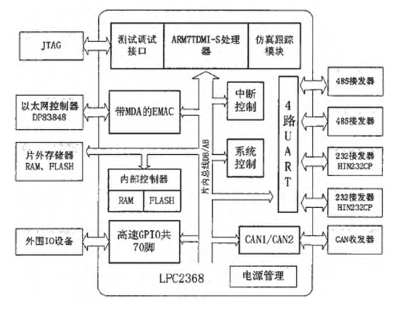 4.1 Gateway composition structure The protocol conversion gateway mainly includes the core processor, Ethernet controller, RS485/232 transceiver and other field bus controllers, peripheral I/O equipment, off-chip memory, etc. The gateway composition structure is shown in Figure 3.