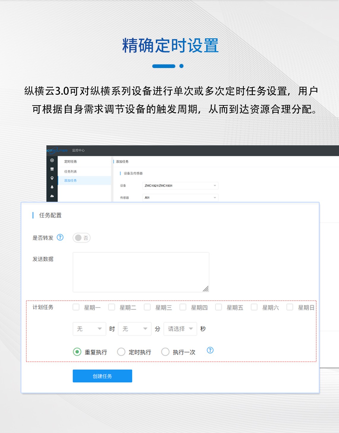 Zongheng Cloud 3.0 version is compatible with all products in the Zongheng Intelligent Control IoTRouter series and supports cloud configuration, multi-platform alarm, scheduled tasks, video monitoring and other functions. Simple operation, convenient management, strong universality, and can meet the needs of different customers.