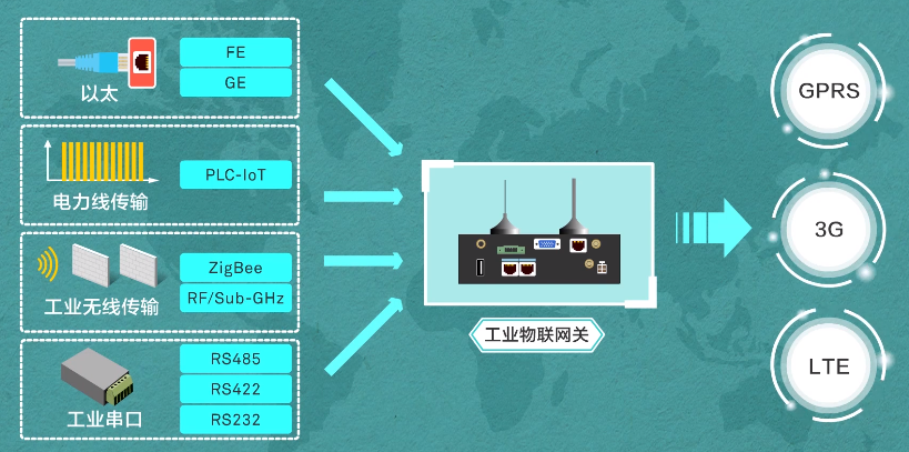 The Industrial Internet of Things can provide a wealth of communication interfaces and protocols, supporting GPRS, 3G, LTE, etc. in the uplink, and Ethernet, ZigBee, RS485, 232, 422, etc. in the downlink.