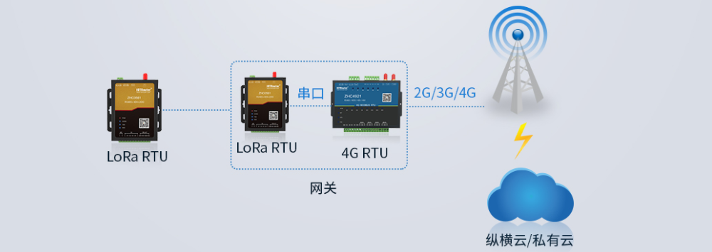The combination of LoRa RTU and 4G RTU can transmit the LoRa RTU transmission data to the server through the 4G network. The server can also issue commands to the LoRa RTU through the 4G network.