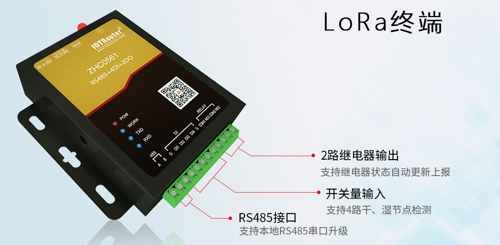 The LoRa terminal developed and produced by Chengdu Zongheng Intelligent Control Technology uses low-frequency half-duplex and supports point-to-point and point-to-multi networking. There are currently 2 product models, namely ZHC0561 and ZHC0661. Among them, ZHC0561 provides 1RS485/4DI/2DO interface. ZHC0661 provides RS485/4AI/2AO interface. Supports local logical settings and inter-device logical settings, and supports AES communication encryption. Using the serial port for sending and receiving lowers the threshold for wireless applications and enables data transmission from the serial port to LoRa. LoRa has the advantages of concentrated power density and strong anti-interference ability. The communication distance of this product can reach 8000m. Suitable for applications in smart meter reading, smart oil fields, agricultural monitoring, industrial manufacturing, smart buildings and other fields.