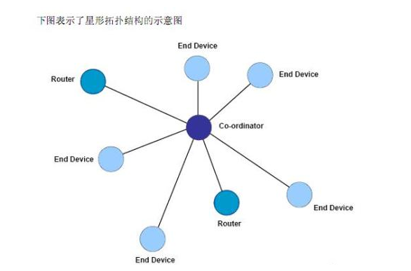 It is the simplest form of topology. It contains a Co-ordinator node and a series of End Device nodes. Each End Device node can only communicate with the Co-ordinator node. If communication is required between two End Device nodes, information must be forwarded through the Co-ordinator node.