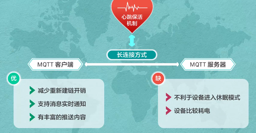 MQTT использует метод длинного соединения и имеет механизм поддержания связи с сердцем, чтобы уменьшить накладные расходы на восстановление цепочки. Он поддерживает уведомление о сообщениях в реальном времени и имеет богатый push-контент. Однако механизм сердцебиения не способствует переходу устройства в спящий режим, и оно потребляет больше энергии.