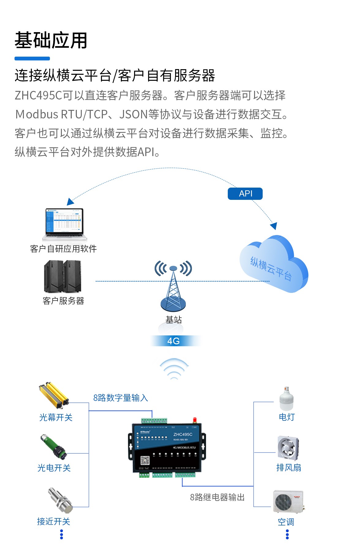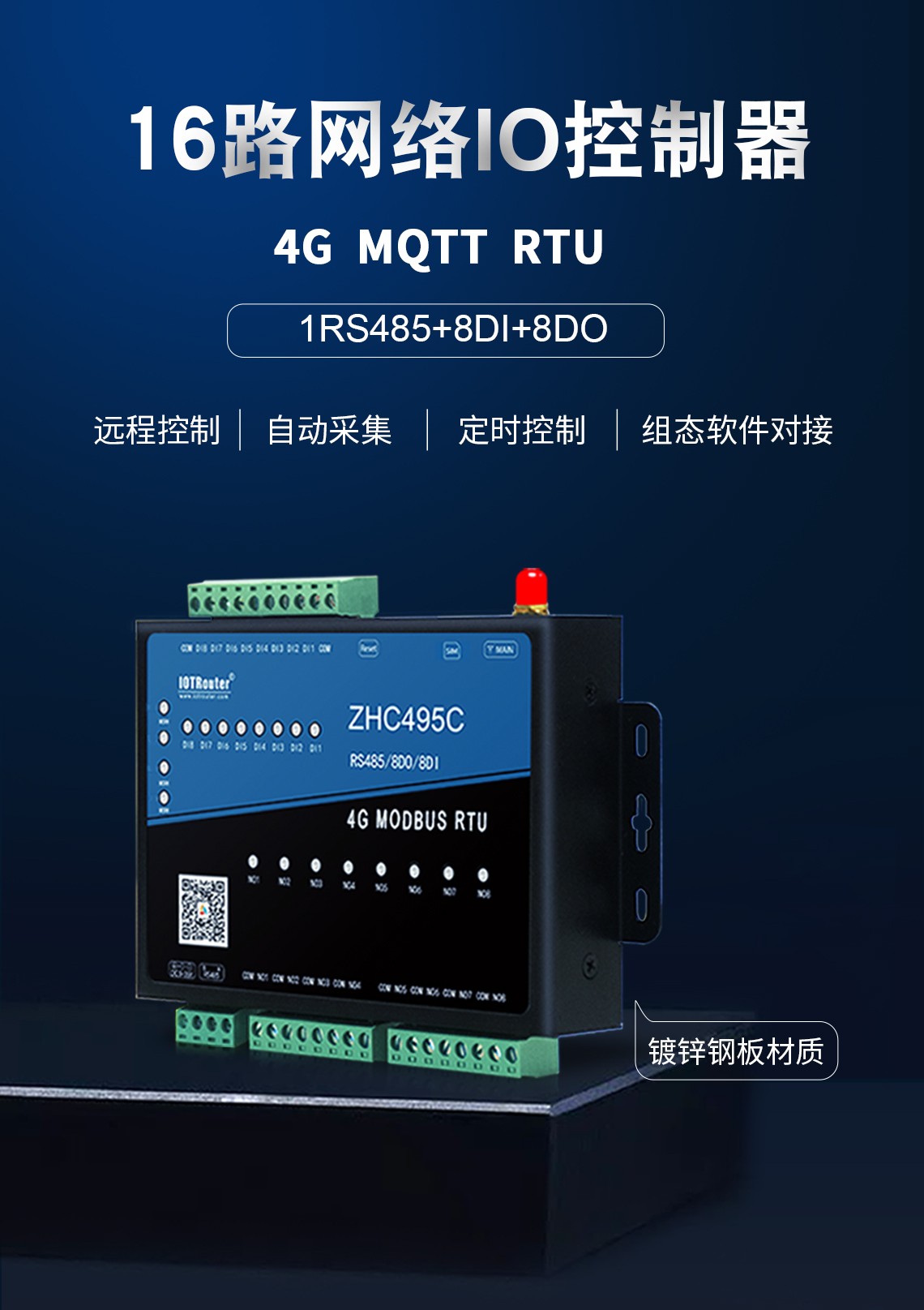 In order to better transmit and collect signals, Zongheng Intelligent Control independently developed and produced a 16-channel network IO controller -ZHC495C. It supports 16 channels of IO input/output (8DI 8DO), supports RS485 local control, and has good scalability. It can flexibly connect the same series of serial port I/O networking devices through its own RS485 bus level to achieve various digital The combination of quantity and analog quantity expands the collection function.
